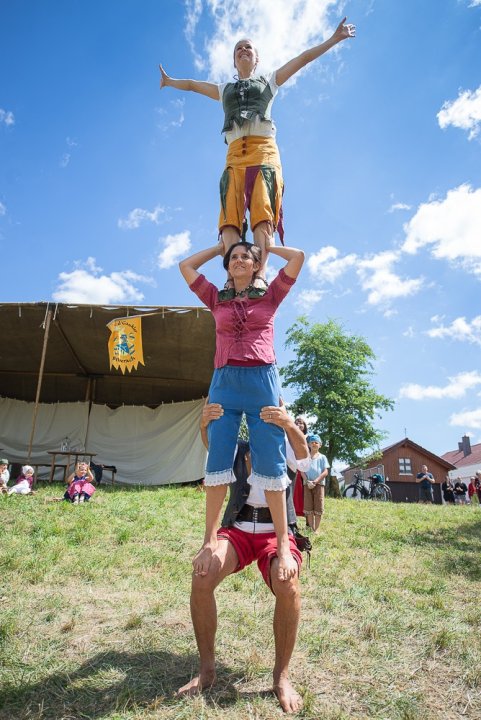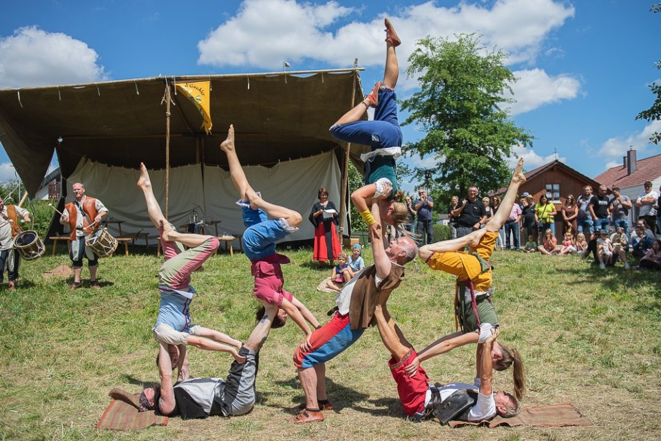 Wir, die Gaukler aus Biberach, bieten Ihnen nun genau das: Unterhaltung mit Akrobatik- und Feuerauftritten, begleitet von unseren Trommlern, sowie mit Zauberei und mittelalterlichem Lagerleben mit Kind und Kegel.